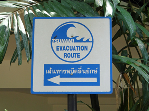 Saturday, 16 May, Nai yang This place has brought us back to reality. Not that there's anything wrong with it - it's a very pleasant resort-style hotel in a small beach-side town close to Phuket airport- but rather, reality was sort of suspended while we were at the Marriott at Khao Lak. The Marriott was a world unto itself, and it kept the outer world where it belonged - outside its perimeter walls. We are here because we have an early flight to KL in the morning, and Khao Lak is 90km from the airport, so it made sense to come here the afternoon before and save ourselves the ultra-early morning trip down the coast. We'd been told by locals in Phang Naga Bay tthe other day that Phuket attracted many Russia tourists, a claim that I found a little unbelievable - until tonight. The restaurant where we ate dinner had a section in Cyrllic, the alphabet used in the Russian language, plus dishes with a distinctly Russian flavour. Actually, the more I look around the more I see notices and signs in Russian, as well as English and Thai. As well as Russian signs, there are many tsunami signs - signs telling you which way to head if the tsunami alert is given. I would have thought that'd be easy. Just as far away from the beach as possible. Nai Yang Beach is a sort of backpacker comfort zone, and as a result, is lined with cafes all sporting "Free wifi" signs. It's now the off-peak season, so the beach isn't too crowded, nor the shops or restaurants. It's a bit laid back, but we'd better not get too relaxed - KL will bring us back up to full speed pretty quickly. Sunday, 17 May, Kuala Lumpur KL greeted us today with a heavy rain burst. No surprise, you say - well, it was, it was mid-morning, a most unusual time for it to occur. Normally, storm/rain activity is late afternoon/early evening, just in time to catch the peak-hour traffic. It was a pretty rough landing for our flight. DB and I have sometimes rated the landings on a scale of 1-10, and so this morning, I decided it was only a 4. "No, any landing we walk away from is at least a pass", said Dave. OK, that makes it 5/10, and then, taking the degree of difficulty with the rain into account boosted it up to 6/10. No too bad for a rough one. Next: a most unusual accommodation. |