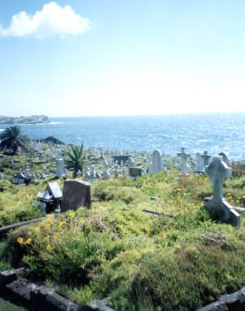 One of the most beautiful settings for a cemetery - the Waverley Cemetery in Sydney. The grave of Ellen and her husband John is centre foreground, almost entirely overgrown with wildflowers and asparagus ferns.
