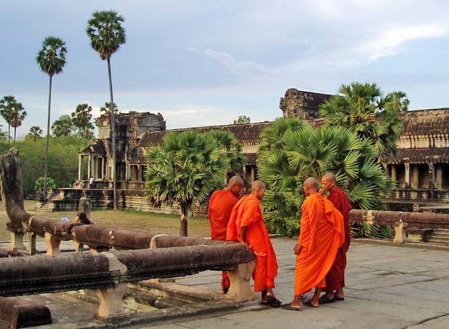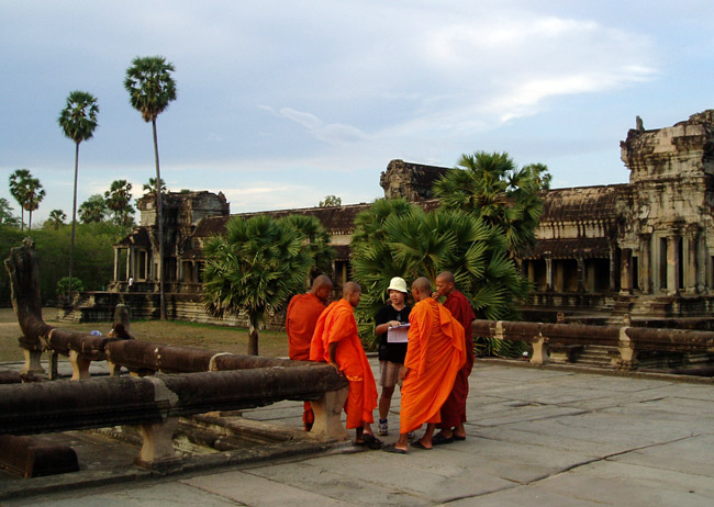 (left) KL’s inner city underground train stations have a good safety feature – glass sliding doors on the platform don’t open until the train has stopped. *** The weekend saw the celebrations of the official birthday of the King of Malaysia. The King, or to give him his full title, Yang di-Pertuan Agong Tuanku Syed Sirajuddin Tuanku Syed Jamalullail, was the subject of a special 16-page feature in the main daily newspaper here on Saturday. It’s hard to imagine Queen Liz’s birthday inspiring such fulsome attention, even in England. I noted with interest that the (Malaysian) Queen did not wear the full Muslim hajib; instead she had a loose flimsy veil floating over her hair. The conservatives here probably would not have approved, but they would find it hard to criticize the Royals. *** It’s hard for me to type today – last night, for the second time since I’ve been here, I came to grief on KL’s notorious footpaths, paved as they are with glazed, sloping tiles: a guarantee that at some stage, your leather-soled shoes are going to slip out from under. That’s exactly what happened to me last night, and it wasn’t even raining. My right hand and arm took most of the brunt of the mishap, and my middle finger now has skin missing, making it difficult to type. So, typos are more than likely today. Tuesday, June 8 Our Cambodian trip is now but a memory, but the task of sorting the photos continues. It’s frustrating how similar some temples are, and identifying them is tricky. However, the Internet is a wonderful aid, and I am generally able to confirm a location by searching for matching images on the Net. Plus, digital photography has allowed some cheating – cleaning up photos to remove unwanted elements…. Compare these two photos for what’s possible with Photoshop:
