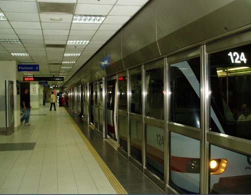 *** Once again, we will not mention the weekend football. Monday, June 7 They must have some strange bed sizes in the Middle East. Yesterday, I found a little shop on Jalan Ampang specializing in beautiful embroidered brocades from Syria. Since we need a new bedspread back home at Adamstown Heights, I checked out a few – they were all 2 metres by 1.5 metres, hardly the Queen size they were supposed to be. They would make beautiful wall hangings, though. Katrina’s mother, Margaret Lane, who is an expert quilter, has been emailed for advice, as I would really like to buy one. While I was out shopping, I gave in to hunger and found myself at a Pizza Hut restaurant. Since I’ve been in KL, I’ve avoided the western fast-food chains, but there appeared to be little else in sight yesterday The other options were KFC and MacDonalds – not much choice really! The menu was the same as back home, but the skimpy toppings were nowhere near as good as those Jenny used to put together when she was a kitchen-hand at the Adamstown Pizza Hut. On my way back from the Ampang Park shopping centre, I wasn’t paying enough attention at the underground train station, and being unfamiliar with this particular stop, jumped on a train going the wrong way. Since the route back to our local station, Dang Wangi, is underground all the way, my error became obvious when the train shot out into broad daylight, on its way out to the northern suburbs. It was an easy mistake to fix – just off at the next station, and across to the other side of the same platform, and where I picked up a southbound train in 2 minutes.